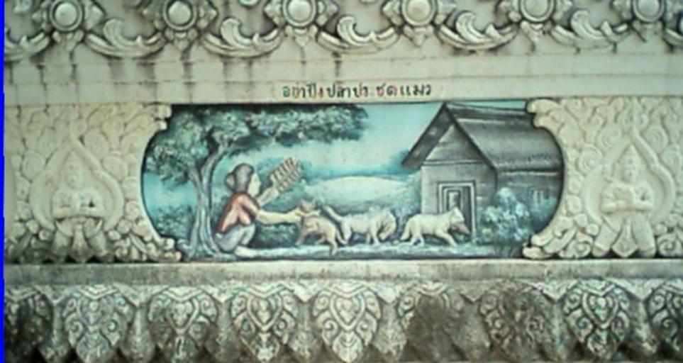 Keywords: 0008อย่าประชดแมว.JPG อย่าปิ้งปลาประชดแมว -- Illustrated Proverb Don't bake fish to spite cat Phra That Phanom chedi Amphoe That Phanom Nakhon Phanom Province northeastern Thailand 2004-06-21 Pawyi Lee Public domain Reliefs in Thailand Wat Phra Tat Phanom Cats in art Feeding animals in art Thai proverbs |