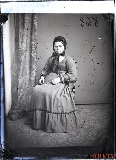 Keywords: Madam Detlef Buck, Maren Petersdatter blev født den 5. oktober 1828 på gården ”Baltzergaard” i Seest. Hendes forældre var Peter Christiansen og Maren Hansdatter. Hun blev gift med Ditlef Mariussen Buch den 24. januar 1848 i Seest Kirke. De boede i Seest indtil 1871, hvor de solgte gården og i 1876 flyttede de til Søndergade i Kolding. På Aagaards billede står der ”Mad. Detef Buck Skannerup”. Ditlef var født den 8. november 1826 i Skanderup, og det er tænkeligt, at de har boet i Skanderup i perioden 1871 til 1876. Maren Petersdatter døde i Kolding den 7. november 1907. Maren og Ditlef fik sammen 7 børn, hvoraf de 6 blev voksne. |