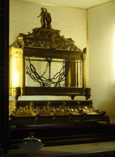 Keywords: 001 Chains of StPeter.jpg en Chains of Saint Peter Second class relics Placed in the church Basilica di San Pietro in Vincoli Rome Italy sv Petrus kedjor Andra klassens relik martyrs pino redskap Belägna i Pietro in Vincoli Rom Italien own LittleGun 2007-06-23 41 53 37 94 N 12 29 35 05 E Jewelled reliquaries Reliquary caskets Chains of Saint Peter |
