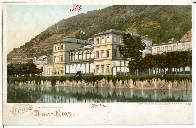 | Keywords: 00306-Bad Ems-1898-Kurhaus-Brück & Sohn Kunstverlag.jpg Bad Ems; Kurhaus Brück Sohn 00306 yes 1898 own Brück Sohn Kunstverlag Meißen cc-zero Spa buildings in Germany Lahn Buildings in Bad Ems Colored postcards of Germany 1898 postcards of Rhineland-Palatinate 1898 postcards published by Brück Sohn Postcards of Bad Ems published by Brück Sohn Images from Brück Sohn Uploaded with VicuñaUploader | ||||