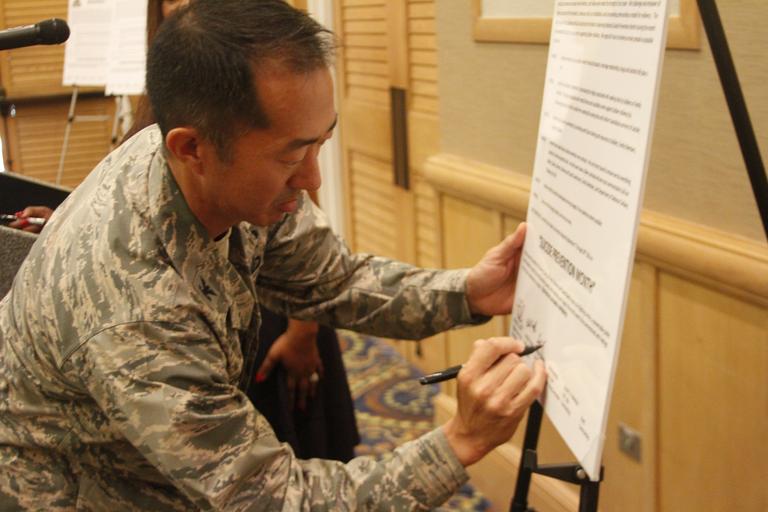 Keywords: pacific hawaii oahu army air force airforce navy marines coast guard coastguard fort shafter fortshafter hale ikeaa haleikeaa suicide prevention month suicidepreventionmonth 8th theater sustainment command 8ththeatersustainmentcommand 8th tsc 8thtsc 9th mission support command 9thmissionsupportcommand 9th msc 9thmsc joint services suicide prevention proclamation military jointservicessuicidepreventionproclamationmilitary u.s. us The first Joint Suicide Prevention Proclamation was signed by representatives from all five branches of the U.S. Military September 7 at the Hale Ikena on Fort Shafter, Hawaii. September is recognized throughout the nation as Suicide Prevention Month and is designed to help raise awareness about suicide and steps to prevent it. The proclamation signing was hosted by the 9th Mission Support Command in Hawaii (Photo by Spc. Jaime Ruiz, 8th TSC Public Affairs/RELEASED) The first Joint Suicide Prevention Proclamation was signed by representatives from all five branches of the U.S. Military September 7 at the Hale Ikena on Fort Shafter, Hawaii. September is recognized throughout the nation as Suicide Prevention Month and is designed to help raise awareness about suicide and steps to prevent it. The proclamation signing was hosted by the 9th Mission Support Command in Hawaii (Photo by Spc. Jaime Ruiz, 8th TSC Public Affairs/RELEASED)