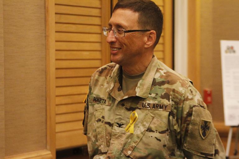 Keywords: pacific hawaii oahu army air force airforce navy marines coast guard coastguard fort shafter fortshafter hale ikeaa haleikeaa suicide prevention month suicidepreventionmonth 8th theater sustainment command 8ththeatersustainmentcommand 8th tsc 8thtsc 9th mission support command 9thmissionsupportcommand 9th msc 9thmsc joint services suicide prevention proclamation military jointservicessuicidepreventionproclamationmilitary u.s. us people indoor The first Joint Suicide Prevention Proclamation was signed by representatives from all five branches of the U.S. Military September 7 at the Hale Ikena on Fort Shafter, Hawaii. September is recognized throughout the nation as Suicide Prevention Month and is designed to help raise awareness about suicide and steps to prevent it. The proclamation signing was hosted by the 9th Mission Support Command in Hawaii (Photo by Spc. Jaime Ruiz, 8th TSC Public Affairs/RELEASED) The first Joint Suicide Prevention Proclamation was signed by representatives from all five branches of the U.S. Military September 7 at the Hale Ikena on Fort Shafter, Hawaii. September is recognized throughout the nation as Suicide Prevention Month and is designed to help raise awareness about suicide and steps to prevent it. The proclamation signing was hosted by the 9th Mission Support Command in Hawaii (Photo by Spc. Jaime Ruiz, 8th TSC Public Affairs/RELEASED) |