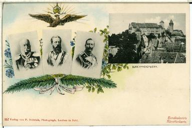 Keywords: 00957-Bisingen-1899-Burg Hohenzollern, Kaiser-Brück & Sohn Kunstverlag.jpg Bisingen; Burg Hohenzollern Kaiser Brück Sohn 00957 yes 1899 own Brück Sohn Kunstverlag Meißen cc-zero Hohenzollern Castle Multiview postcards Wilhelm II of Germany Friedrich III of Germany Wilhelm I of Germany Buildings in Baden-Württemberg Colored postcards of Germany 1899 postcards of Baden-Württemberg 1899 postcards published by Brück Sohn Postcards of Bisingen published by Brück Sohn Images from Brück Sohn Uploaded with VicuñaUploader