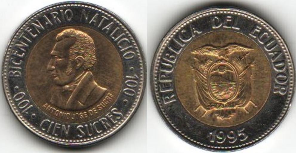 Keywords: 0100+Sucres+Ecuador+1995.jpg Ecuadorian 100 Sucres coin own Scan 9 7 2006 Scanned by Ma_xyz Public Domain Coins of Ecuador