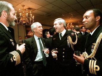 | Keywords: 011107-N-5636P-001 Gordon England with attaches.jpg en Washington D C Nov 7 2001 ” The best way to build relationships between countries is to build relationships between people said the Honorable Gordon R England Secretary of the Navy at the monthly Naval Attaché Association luncheon held at the Washington Navy Yard on 7 November 2001 The voluntary association meets to hear guest speakers discuss issues of concern to the various navies and to build relationships From left Capt Derek Christian South African Naval Attaché; Mr England; Commo Nick Harris British Naval Attaché; and Cmdr George Alily Nigerian Naval Attaché 011107-N-5636P-001 2001-11-07 http //www navy mil/navydata/people/secnav/england/images/eng-images04 html Chief Photographer's Mate Dolores L Parlato other versions PD-USGov-Military-Navy Uploaded with UploadWizard People of the South African Navy Royal Navy officers Navy people of Nigeria Military attachés of South Africa to the United States Military attachés of the United Kingdom to the United States |