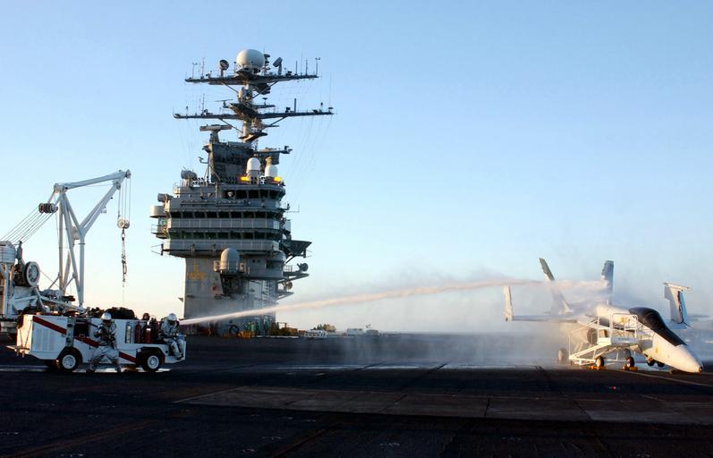 | Keywords: 011206-N-1407C-003 Training at Sea.jpg en 011206-N-1407C-003 At sea aboard USS George Washington CVN 73 Dec 6 2001 -- Sailors practice fire-fighting skills on a simulated crashed aircraft during a drill aboard USS George Washington The Norfolk Va -based warship is conducting carrier qualifications in the Atlantic Ocean U S Navy photo by Photographer's Mate 3rd Class Scott Campbell RELEASED 2001-12-06 011206-N-1407C-003 Navy http //www navy mil/view_image asp id 208 U S Navy photo by Photographer's Mate 3rd Class Scott Campbell PD-USGov-Military-Navy Photographs taken on 2001-12-06 USS George Washington CVN-73 flight deck December 2001 in the United States Fire hoses Firefighters of the United States Firefighting training in the United States Navy Images from US Navy location ATLANTIC OCEAN F/A-18 Hornet prototypes People with helmets Sailors from the United States Navy Teamwork Vehicles of the United States Navy Military people in 2001 Men at work Military people on duty |