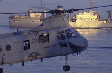 Keywords: 011226-N-6520M-014 CH-46 helicoper approaches USS Peleliu.jpg en 011226-N-6520M-014 At sea aboard USS PELELIU LHA 5 Dec 26 2001 -- A CH-46 helicopter approaches the flight deck of USS Peleliu LHA 5 USS Peleliu is the flagship of an Amphibious Ready Group ARG operating in support of Operation Enduring Freedom U S Navy photograph by Photographer's Mate 1st Class Greg Messier Released 2001-12-26 011226-N-6520M-014 Navy http //www navy mil/view_image asp id 322 U S Navy photo PD-USGov-Military-Navy CH-46 Sea Knight Aboard USS Peleliu LHA-5 Photos taken with Nikon D1 December 2001 photographs 26 December Operation Enduring Freedom in 2001 Military people in 2001 People of the United States in 2001 December 2001 in the United States |