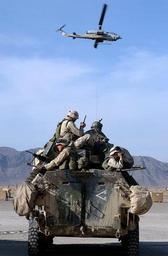 | Keywords: 011228-N-2383B-509 U.S. Marines.jpg en 011228-N-2383B-509 - At the U S Marine Corps Base in Kandahar Afghanistan Dec 28 2001 - Marines on a Light Armored Vehicle LAV prepare to go on patrol as an AH1W Super Cobra helicopter flies by U S Marines are in Afghanistan operating in support of Operation Enduring Freedom U S Navy photo by Chief Photographer's Mate Johnny Bivera Fleet Combat Camera Atlantic RELEASED 2001-12-28 011228-N-2383B-509 Navy http //www navy mil/view_image asp id 602 Chief Photographer's Mate Johnny Bivera Fleet Combat Camera Atlantic United States Navy PD-USGov-Military-Navy December 2001 photographs AH-1W SuperCobra US Marine Corps December 2001 in Afghanistan Desert Camouflage Uniform in 2001 LAV-25 Male soldiers Men at work Military people in 2001 PASGT People of the United States in 2001 Military people on duty Taken with Nikon D1H Tank desant United States Marine Corps in the War in Afghanistan 2001-present War in Afghanistan in 2001 |