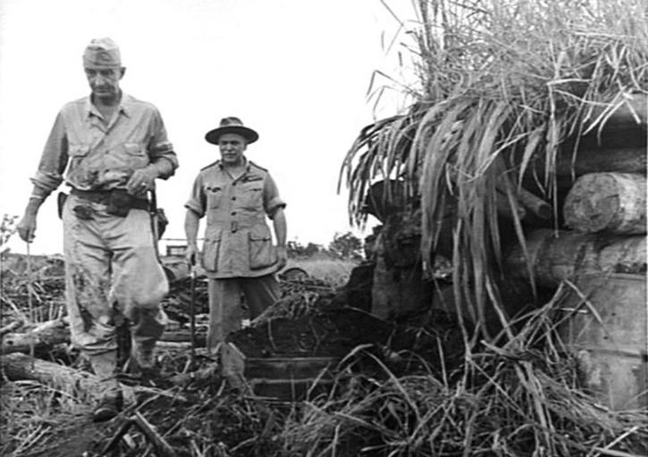 | Keywords: 014092. Blamey and Eichelberger inspect bunker at Buna.jpg Australian General Thomas Blamey and Lieutenant General Robert Eichelberger US Army inspect a bunker at Buna 014092 Australian War Memorial 1943-01-14 PD-Australia PD-US-1996 January 1943 in Asia Bunkers Robert Eichelberger Thomas Blamey |