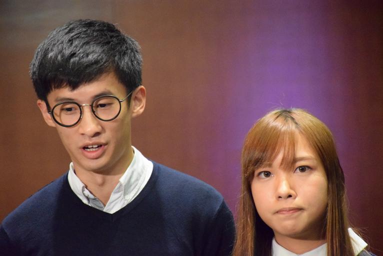 Keywords: 香港立會主席押後兩本土派議員宣誓 01.jpg zh-tw 年新政兩名立法 議員梁頌恆及游蕙禎 見傳媒 (美 之音記 湯惠芸拍 ) 2016-10-25 17 10 19 http //www voacantonese com/a/it-hk-legco-president-deferring-oath-taking-for-localist-lawmakers-live-qa/3565458 html 湯惠芸 other versions Custom license marker 2016 11 05 PD-USGov-VOA Hong Kong LegCo members' oath-taking controversy Yau Wai-ching LEUNG Chung-Hang Baggio |