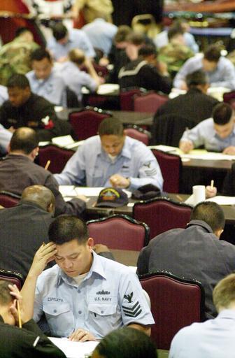 Keywords: 020117-N-5961C-003 2002 Chiefs Exam.jpg en 020117-N-5961C-003 Naval Air Facility Atsugi Japan Jan 17 2002 -- Mess Specialist 1st Class Espeleta Lower Left a native of Bataan Republic of the Philippines participates in the annual exam for selection consideration to Chief Petty Officer The exam containes 50 additional questions than in previous years 100 questions pertain to professional development and 100 questions address military leadership Each sailor has three hours to complete the exam U S Navy photo by Chief Photographer's Mate Spike Call RELEASED 2002-01-17 020117-N-5961C-003 Navy http //www navy mil/view_image asp id 600 U S Navy photo by Chief Photographer's Mate Spike Call PD-USGov-Military-Navy Images from US Navy location Atsugi Japan January 2002 photographs Military people in 2002 January 2002 in Japan Photographs of sitting men 17 January |