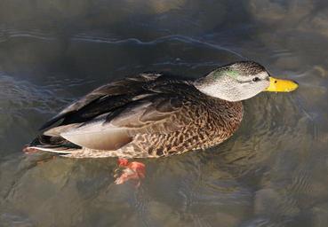 Keywords: Bird # 3 taken at this location and date. Bill color and curl to tail feathers indicates male. Brown female-like body color in this season indicates "Mexican Mallard". But bright yellow bill, more white in outer retrices, and green tones on crown (seen in some light) indicates hybrid with "Northern Mallard. Bird # 3 taken at this location and date. Bill color and curl to tail feathers indicates male. Brown female-like body color in this season indicates "Mexican Mallard". But bright yellow bill, more white in outer retrices, and green tones on crown (seen in some light) indicates hybrid with "Northern Mallard.