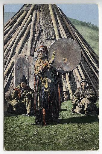 View Original:02._Алтайский_шаман_с_бубном_на_фоне_традиционного_жилища_-_чаадыр.jpg (533x800)