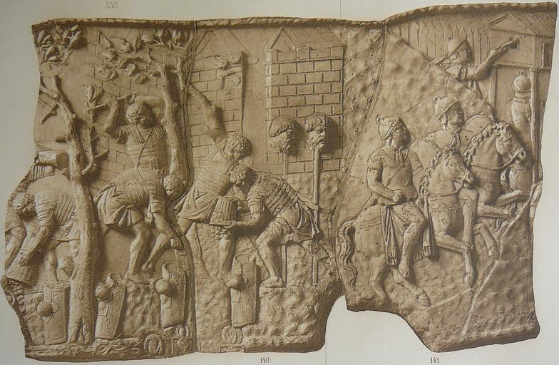 Keywords: 040 Conrad Cichorius, Die Reliefs der Traianssäule, Tafel XL.jpg attributed to Graphics Die Reliefs der Traianssäule nach Conrad Cichorius Tafel XL Straßenbau im Gebirge Szene LVI ; Besetzung einer dakischen Ansiedlung Szene LVII The Reliefs of Trajan's Column by Conrad Cichorius Plate number XL Road-building in the mountains Scene LVI ; Assault on a Dacian village Scene LVII Sculpture AD 113 ; Graphics 1896 Sculpture bas-relief; Graphics monochrome graphics based on photographs Sculpture Institution Trajan's Column object history credit line accession number Conrad Cichorius Die Reliefs der Traianssäule Erster Tafelband Die Reliefs des Ersten Dakischen Krieges Tafeln 1-57 Verlag von Georg Reimer Berlin 1896 other versions 1932 Trajan's Column - Cichorius Plates |