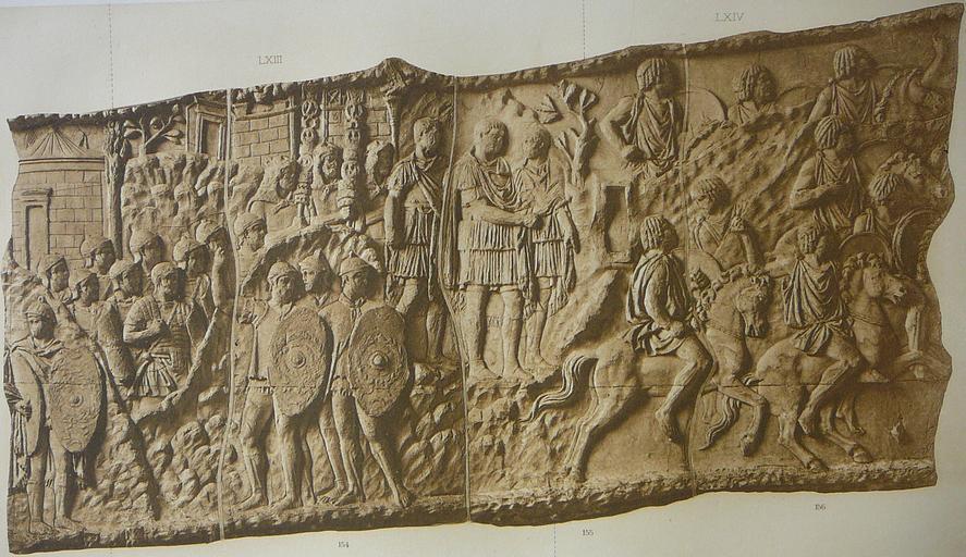 Keywords: 044 Conrad Cichorius, Die Reliefs der Traianssäule, Tafel XLIV.jpg attributed to Graphics Die Reliefs der Traianssäule nach Conrad Cichorius Tafel XLIV Vormarsch im Gebirge Szene LXIII ; Streifscharen leichter Kavallerie Szene LXIV The Reliefs of Trajan's Column by Conrad Cichorius Plate number XLIV Advance into the mountains Scene LXIII ; Light cavalry flying columns Scene LXIV Sculpture AD 113 ; Graphics 1896 Sculpture bas-relief; Graphics monochrome graphics based on photographs Sculpture Institution Trajan's Column object history credit line accession number Conrad Cichorius Die Reliefs der Traianssäule Erster Tafelband Die Reliefs des Ersten Dakischen Krieges Tafeln 1-57 Verlag von Georg Reimer Berlin 1896 other versions 1932 Trajan's Column - Cichorius Plates |