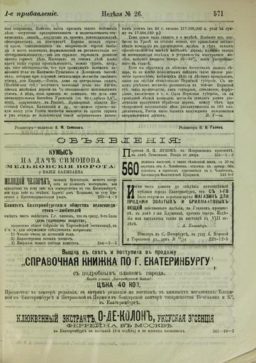 | Keywords: Екатеринбургская неделя. 1887. № 26, первое прибавление