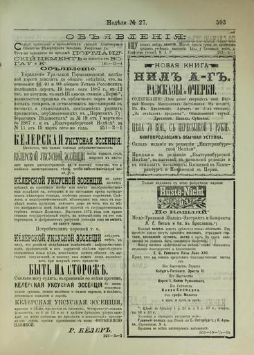 | Keywords: Екатеринбургская неделя. 1887. № 27