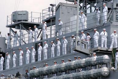 | Keywords: nashville deployment lpd 13 lpd13 esg va outdoor 060606-N-1688B-096 Norfolk, Va. (June 6, 2006) - Sailors man the rails as the amphibious transport dock USS Nashville (LPD 13), an element of the amphibious assault ship USS Iwo Jima Expeditionary Strike Group (ESG), departs Naval Station Norfolk June 6. The Iwo Jima ESG consists of Nashville, the guided-missle destroyers USS Cole (DDG 67) and USS Bulkeley (DDG84) - all home ported in Norfolk; the guided-missle cruiser USS Philippine Sea (CG 58) - home ported at Naval Station Mayport, Fla.; the attack submarine USS Albuquerque (SSN 706) - home ported at Naval Station Groton, Conn.; and the dock landing ship USS Whidbey Island (LSD 41) - home ported at naval amphibious bas Little creek. the Iwo Jima ESG will deploy for six months to conduct maritime security operations in support of the world war on terrorism. U.S. Navy photo by Journalist Seaman Apprentice Matthew Bookwalter (RELEASED) 060606-N-1688B-096 Norfolk, Va. (June 6, 2006) - Sailors man the rails as the amphibious transport dock USS Nashville (LPD 13), an element of the amphibious assault ship USS Iwo Jima Expeditionary Strike Group (ESG), departs Naval Station Norfolk June 6. The Iwo Jima ESG consists of Nashville, the guided-missle destroyers USS Cole (DDG 67) and USS Bulkeley (DDG84) - all home ported in Norfolk; the guided-missle cruiser USS Philippine Sea (CG 58) - home ported at Naval Station Mayport, Fla.; the attack submarine USS Albuquerque (SSN 706) - home ported at Naval Station Groton, Conn.; and the dock landing ship USS Whidbey Island (LSD 41) - home ported at naval amphibious bas Little creek. the Iwo Jima ESG will deploy for six months to conduct maritime security operations in support of the world war on terrorism. U.S. Navy photo by Journalist Seaman Apprentice Matthew Bookwalter (RELEASED) 060606-N-1688B-096 Norfolk, Va. (June 6, 2006) - Sailors man the rails as the amphibious transport dock USS Nashville (LPD 13), an element of the amphibious assault ship USS Iwo Jima Expeditionary Strike Group (ESG), departs Naval Station Norfolk June 6. The Iwo Jima ESG consists of Nashville, the guided-missle destroyers USS Cole (DDG 67) and USS Bulkeley (DDG84) - all home ported in Norfolk; the guided-missle cruiser USS Philippine Sea (CG 58) - home ported at Naval Station Mayport, Fla.; the attack submarine USS Albuquerque (SSN 706) - home ported at Naval Station Groton, Conn.; and the dock landing ship USS Whidbey Island (LSD 41) - home ported at naval amphibious bas Little creek. the Iwo Jima ESG will deploy for six months to conduct maritime security operations in support of the world war on terrorism.