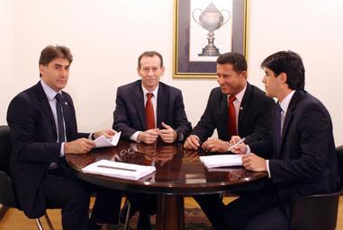Keywords: orçamento andré bueno andrébueno leonaldo paranhos leonaldoparanhos professor lemos professorlemos adelino ribeiro adelinoribeiro groupshot people indoor Deputados André Bueno (PDT), Leonaldo Paranhos (PSC), Professor Lemos (PT) e Adelino Ribeiro (PSL) discutem criação de emendas ao Orçamento 2012 visando benefícios a Cascavel e região. Foto: Nani Gois/Alep (crédito obrigatório) Deputados André Bueno (PDT), Leonaldo Paranhos (PSC), Professor Lemos (PT) e Adelino Ribeiro (PSL) discutem criação de emendas ao Orçamento 2012 visando benefícios a Cascavel e região. Foto: Nani Gois/Alep (crédito obrigatório)