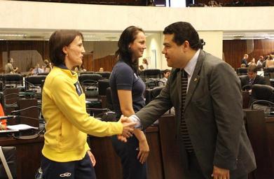 Keywords: Deputado Pastor Edson Praczyk (PRB) parabeniza a ginasta paranaense Angélica Kvieczynski (azul) e sua treinadora e técnica da seleção brasileira de ginástica rítmica, Anita Klemann. Angélica conquistou quatro medalhas nos Jogos Pan-Americanos de Guadalajara 2011. Leia mais: www.alep.pr.gov.br/imprensa/noticias/noticia/20792/menina... Foto: Nani Gois/Alep (crédito obrigatório) Deputado Pastor Edson Praczyk (PRB) parabeniza a ginasta paranaense Angélica Kvieczynski (azul) e sua treinadora e técnica da seleção brasileira de ginástica rítmica, Anita Klemann. Angélica conquistou quatro medalhas nos Jogos Pan-Americanos de Guadalajara 2011. Leia mais: www.alep.pr.gov.br/imprensa/noticias/noticia/20792/menina... Foto: Nani Gois/Alep (crédito obrigatório) |
