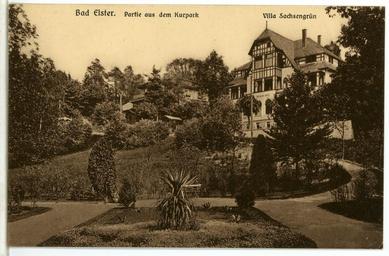 Keywords: 08905-Bad Elster-1907-Kurpark, Villa Sachsengrün-Brück & Sohn Kunstverlag.jpg Bad Elster; Kurpark Villa Sachsengrün Brück Sohn 08905 yes 1907 own Brück Sohn Kunstverlag Meißen cc-zero Villas in Saxony Parks in Saxony Buildings in Bad Elster 1907 postcards of Vogtlandkreis 1907 postcards published by Brück Sohn Postcards of Bad Elster published by Brück Sohn Images from Brück Sohn Uploaded with VicuñaUploader |