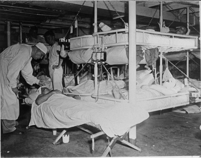 | Keywords: blackandwhite monochrome peal harbor; harbor world war 2; 2 japan; japan hawaii blackandwhite monochrome black and white Burned and injured patients receive care aboard USS Solace following Pearl Harbor attack. [Wards.][Hospital ships. Transport of sick and wounded.][Scene.] Solace (AH-5) Folder 4 09-5072-14 Burned and injured patients receive care aboard USS Solace following Pearl Harbor attack. [Wards.][Hospital ships. Transport of sick and wounded.][Scene.] Solace (AH-5) Folder 4 09-5072-14 Casualties received care aboard the hospital ship U.S.S. Solace following the Pearl harbor attack. Flash burn, shrapnel, and concussion injuries inundated the Solace's wards, the Naval Hospital at Pearl Harbor, and nearly all military and civilian medical facilities in the Honolulu area. [Hospital ships. Transport of sick and wounded.][Wounds and injuries.][Scene.] Pearl Harbor, Hawaii/Territory of Hawaii (09-5043-31) Casualties received care aboard the hospital ship U.S.S. Solace following the Pearl harbor attack. Flash burn, shrapnel, and concussion injuries inundated the Solace's wards, the Naval Hospital at Pearl Harbor, and nearly all military and civilian medical facilities in the Honolulu area. [Hospital ships. Transport of sick and wounded.][Wounds and injuries.][Scene.] Pearl Harbor, Hawaii/Territory of Hawaii (09-5043-31) |