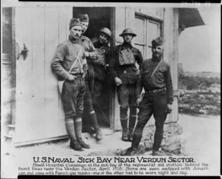 Keywords: history blackandwhite people monochrome black and white 09-7911-19 "U.S. Naval Sick Bay Near Verdun Sector: Naval Hospital Corpsmen at the sick bay of the regimental aid station behind the front lines near the Verdun sector, April 1918. Some are seen equipped with American and some with French gas masks - one or the other had to be worn night and day." [Portraits.] [World War 1.] [Scene.] WWI Photos. 09-7911-19 "U.S. Naval Sick Bay Near Verdun Sector: Naval Hospital Corpsmen at the sick bay of the regimental aid station behind the front lines near the Verdun sector, April 1918. Some are seen equipped with American and some with French gas masks - one or the other had to be worn night and day." [Portraits.] [World War 1.] [Scene.] WWI Photos. |