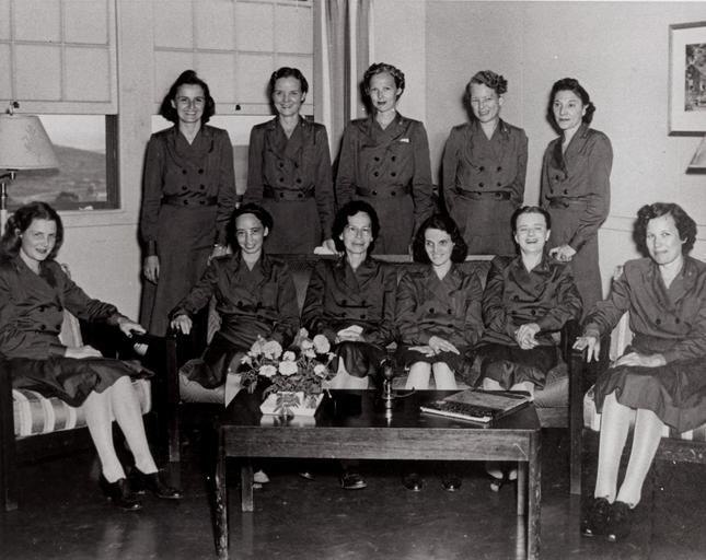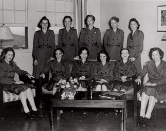 Keywords: indoor blackandwhite black and white 09-8156-006 Navy POW nurses following liberation, March 1945. Left to right (seated): Mary Rose Harrington, Eldene Paige, Laura Cobb, Margaret Nash, Edwina Todd, Berthat Evans. Left to right (standing): Mary Chapman, Goldia O'Haver, Dorothy Still, Susie Pitcher, Helen Gorzelanski. [Portraits.] [Nurses. Nursing.] [Prisoners of war.] [World War 2.] [Scene.] 03/1945 09-8156-006 Navy POW nurses following liberation, March 1945. Left to right (seated): Mary Rose Harrington, Eldene Paige, Laura Cobb, Margaret Nash, Edwina Todd, Berthat Evans. Left to right (standing): Mary Chapman, Goldia O'Haver, Dorothy Still, Susie Pitcher, Helen Gorzelanski. [Portraits.] [Nurses. Nursing.] [Prisoners of war.] [World War 2.] [Scene.] 03/1945 |
