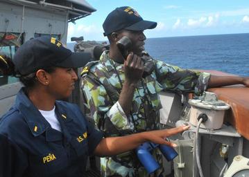 | Keywords: 100226-N-8463W-007 (4403904695).jpg U S Navy Ensign Emily Pena an engineering officer aboard the guided-missile frigate USS Nicholas FFG 47 instructs an Africa Partnership Station East student on how to communicate ship coordinates with the bridge during a man overboard drill in the Indian Ocean Feb 26 2010 Nicholas is deployed with high-speed vessel Swift HSV 2 as part of Africa Partnership Station East an international initiative developed by Naval Forces Europe and Naval Forces Africa to improve maritime safety and security on the African continent DoD photo by Mass Communication Specialist 3rd Class Tracey L Whitley U S Navy/Released https //www flickr com/photos/39955793 N07/4403904695/ 100226-N-8463W-007 2010-02-25 23 39 https //www flickr com/people/39955793 N07 U S Department of Defense Current Photos PD-USGov-Military-Navy U S Department of Defense Current Photos https //flickr com/photos/39955793 N07/4403904695 2016-11-27 19 17 05 United States Government Work India Files of India with bad file names Africa Partnership Station USS Nicholas FFG-47 United States Navy Files from Flickr with bad file names Files uploaded by Reguyla |