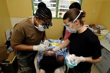 MAKE A MEME View Large Image 100317-N-7948C-039 (4457057243).jpg U S Air Force Capt Paulencia Morris left and Staff Sgt Jennifer Hurley examine a Ghanaian woman during a dental outreach program at Manhean Health Center in Tema Ghana March 17 2010 in support of Africa ...