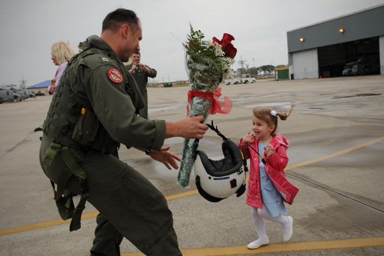 MAKE A MEME View Large Image 100317-N-8590G-002 (4455095682).jpg U S Navy Lt David Jarrett greets his daughter during a homecoming celebration at Naval Station Mayport Fla March 17 2010 Jarrett who is assigned to Detachment 5 Helicopter Anti-Submarine Squadron Light 46 ...