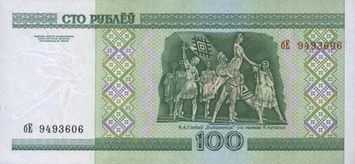 Keywords: 100-rubles-Belarus-2000-b.jpg 100 ублей Бело уссии 2000 100 roubles of Belarus 2000 own scan 2000 National Bank of Republic of Belarus ациональный банк Республики Бела усь ацыянальны Банк Рэспублiкi Бела усь PD-BY-exempt banknotes Belarusian Opera and Ballet Theater on banknotes Banknotes of Belarus 2000 Dancers on banknotes Banknotes with a face value of 100 Green banknotes |