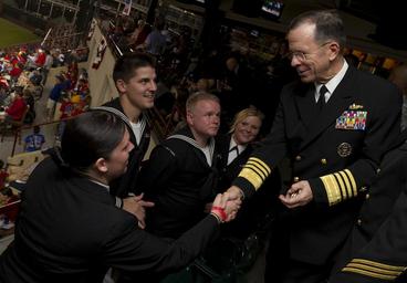 | Keywords: 101031-N-0696M-277 (5136883460).jpg Chairman of the Joint Chiefs of Staff Navy Adm Mike Mullen greets U S Sailors during game four of the 106th World Series in Arlington Texas Oct 31 2010 The game between the San Francisco Giants and Texas Rangers was dedicated to the Welcome Back Veterans initiative which honors and encourages the support of returning Service members and their families DoD photo by Mass Communication Specialist 1st Class Chad J McNeeley U S Navy/Released https //www flickr com/photos/39955793 N07/5136883460/ 101031-N-0696M-277 2010-10-31 22 03 https //www flickr com/people/39955793 N07 U S Department of Defense Current Photos PD-USGov-Military-Navy U S Department of Defense Current Photos https //flickr com/photos/39955793 N07/5136883460 2016-11-28 01 51 10 United States Government Work Veterans of the United States Michael G Mullen in 2010 Files from the U S Department of Defense Flickr stream Joint Chiefs of Staff Veterans 2010 World Series Military in Texas United States Navy Files from Flickr with bad file names Files uploaded by Reguyla |