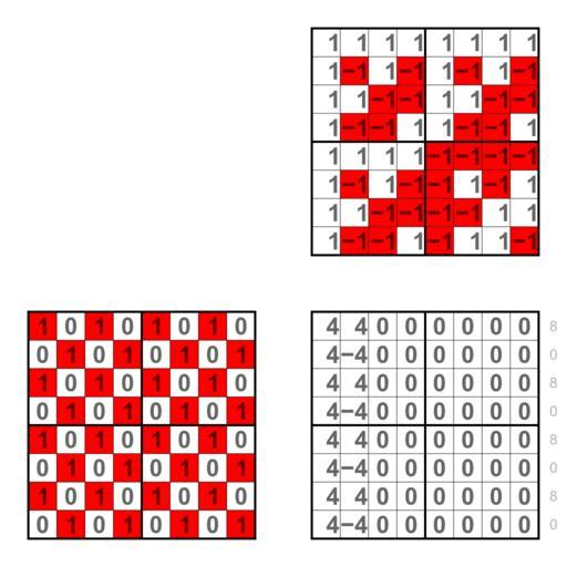 | Keywords: 1010 1010 Walsh spectrum.svg Walsh spectra of 3-ary Boolean functions like 1010 1010 The binary strings are multiplied with a Walsh matrix of order 8 The red squares in the background are additional information and show the product of the binary strings with a binary Walsh matrix own Lipedia Walsh spectrum of 3-ary Boolean functions |