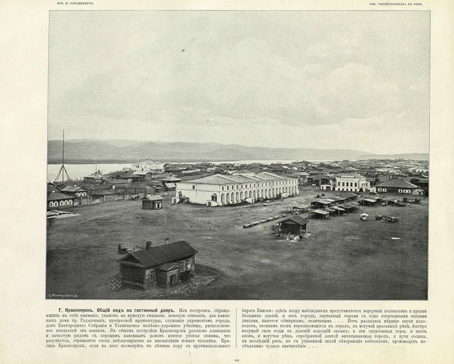 | Keywords: 102 Красноярск Общий вид на гостиный двор.jpg en «Great Path - Views of Siberia and Great Siberian Railway» book 1899 ru Альбом «Великий путь Виды Сиби и и Великой сиби ской железной до оги» 1899 1899 flickr photos by I R Tomaskiewicz comments by V A I-v Custom license marker 2014 04 08 PD-RusEmpire PD-old Great Path - Views of Siberia and Great Siberian Railway Uploaded with UploadWizard | ||||
