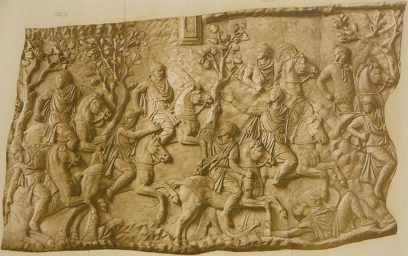 Keywords: 105 Conrad Cichorius, Die Reliefs der Traianssäule, Tafel CV.jpg attributed to Graphics Die Reliefs der Traianssäule nach Conrad Cichorius Tafel CV Verfolgungsgefecht Szene CXLIII ; Flucht dakischer Reiter Szene CXLIV The Reliefs of Trajan's Column by Conrad Cichorius Plate number CV Fight between pursuers and pursued Scene CXLIII ; Dacians fleeing on horseback in the mountains Scene CXLIV Sculpture AD 113 ; Graphics 1900 Sculpture bas-relief; Graphics monochrome graphics based on photographs Sculpture Institution Trajan's Column object history credit line accession number Conrad Cichorius Die Reliefs der Traianssäule Zweiter Tafelband Die Reliefs des Zweiten Dakischen Krieges Tafeln 58-113 Verlag von Georg Reimer Berlin 1900 other versions 1932 Uncategorized 2015 June 24 |
