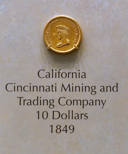 Keywords: 10 Dollars, Cincinnati Mining and Trading Company, California, 1849 - National Museum of American History - DSC00217.jpg en Exhibit in the National Museum of American History Washington DC USA Photography was permitted in the museum without restriction 2015-03-27 11 31 53 own Daderot other versions cc-zero Coins of the California Gold Rush in the National Museum of American History |