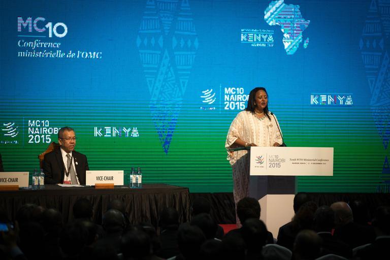 Keywords: KENYA, Nairobi: In a photograph taken by Make It Kenya 15 December 2015, Kenya's Cabinet Secretary for Foreign Affairs and Trade, Amina Mohamed, speaks during the opening of the Tenth World Trade Organisation (WTO) ministerial conference in the Kenyan capital, Nairobi; the first to be held on African soil. MAKE IT KENYA PHOTO / STUART PRICE. KENYA, Nairobi: In a photograph taken by Make It Kenya 15 December 2015, Kenya's Cabinet Secretary for Foreign Affairs and Trade, Amina Mohamed, speaks during the opening of the Tenth World Trade Organisation (WTO) ministerial conference in the Kenyan capital, Nairobi; the first to be held on African soil. MAKE IT KENYA PHOTO / STUART PRICE. |