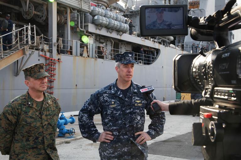 | Keywords: 110116-A-0566T-025 (5367447751).jpg 110116-A-0566T-025 MAYPORT Fla January 16 2011 U S Navy Capt John Meier commanding officer of USS Gunston Hall LSD 44 and U S Marine Corps Lt Col Paul Baker Security Cooperation Task Force commander speaks with local media about Amphibious Southern Partnership Station 2011 A-SPS 11 The mission of A-SPS 11 is to conduct subject matter expert exchanges SMEE's with partner nation military and security forces that develop and test participating regional civil and maritime services' capabilities to respond to a wide variety of maritime missions U S Army photo by Sergeant Nashaunda Tilghman https //www flickr com/photos/39955793 N07/5367447751/ 110116-A-0566T-025 2011-01-16 10 02 https //www flickr com/people/39955793 N07 U S Department of Defense Current Photos PD-USGov U S Department of Defense Current Photos https //flickr com/photos/39955793 N07/5367447751 2016-09-03 15 33 08 United States Government Work Southern Partnership Station 2011 Naval Station Mayport |