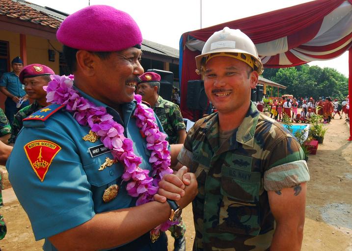| Keywords: 110530-N-KK935-295 (5804053101).jpg Indonesian Marine Corps Brig Gen Arif Suherman left the commander of Naval Base 3 Jakarta shakes hands with U S Navy Builder 3rd Class Jermaine Takai assigned to Amphibious Construction Battalion 1 at a ribbon cutting ceremony for an engineering civic action project in support of Cooperation Afloat Readiness and Training CARAT Indonesia 2011 at the Ciangsana Elementary School in Jakarta Indonesia May 30 2011 CARAT is a series of bilateral exercises held annually in Southeast Asia to strengthen relationships and enhance force readiness DoD photo by Mass Communication Specialist 2nd Class Jessica Bidwell U S Navy/Released https //www flickr com/photos/39955793 N07/5804053101/ 110530-N-KK935-295 2011-05-29 20 36 https //www flickr com/people/39955793 N07 U S Department of Defense Current Photos PD-USGov-Military-Navy U S Department of Defense Current Photos https //flickr com/photos/39955793 N07/5804053101 2016-09-03 14 11 49 United States Government Work Military training Indonesia Jakarta United States Marine Corps United States Marine Corps photos requiring renaming |