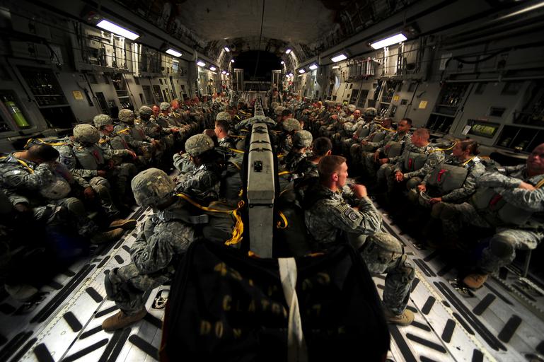 | Keywords: 110614-F-BB898-342 (5880471311).jpg U S Soldiers assigned to the 82nd Brigade Support Battalion 3rd Brigade 82nd Airborne Division travel aboard a C-17 Globemaster III aircraft to a drop zone to conduct personnel airdrops during a joint operations access exercise JOAX June 14 2011 at Fort Bragg N C A JOAX is a two-week exercise that prepares the Air Force and Army to respond to worldwide crises and contingencies DoD photo by Senior Airman Asha Harris U S Air Force/Released https //www flickr com/photos/39955793 N07/5880471311/ 110614-F-BB898-342 2011-06-21 16 11 https //www flickr com/people/39955793 N07 U S Department of Defense Current Photos PD-USGov U S Department of Defense Current Photos https //flickr com/photos/39955793 N07/5880471311 2016-09-03 14 12 22 United States Government Work Fort Bragg |