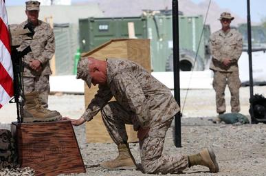 | Keywords: 111013-M-YI942-003 (6280539348).jpg U S Marine Corps Lieutenant Col William H Vivian center the commanding officer of 2nd battalion 4th Marine Regiment pays his final respects to Lance Cpl Benjamin W Schmidt after a memorial service in Musa Qal'eh Afghanistan Oct 13 2011 honoring the fallen Marine who died while conducting combat operations DoD photo by Cpl Tommy Bellegarde U S Marine Corps/Released https //www flickr com/photos/39955793 N07/6280539348/ 111013-M-YI942-003 2011-10-13 03 05 https //www flickr com/people/39955793 N07 U S Department of Defense Current Photos PD-USGov U S Department of Defense Current Photos https //flickr com/photos/39955793 N07/6280539348 2016-09-03 13 12 56 United States Government Work Afghanistan United States Department of Defense |