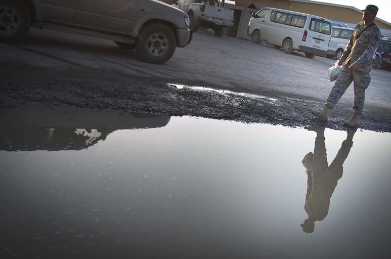 Keywords: 111111-F-ZU607-028 (6344382113).jpg U S Air Force Staff Sgt Jeremy Hale 451st Expeditionary Operations Support Squadron avoids a flooded area while walking at Kandahar Airfield Afghanistan Nov 11 2011 DoD photo by Senior Airman Corey Hook U S Air Force/Released https //www flickr com/photos/39955793 N07/6344382113/ 111111-F-ZU607-028 2011-11-11 22 17 https //www flickr com/people/39955793 N07 U S Department of Defense Current Photos PD-USGov U S Department of Defense Current Photos https //flickr com/photos/39955793 N07/6344382113 2016-09-03 13 13 04 United States Government Work Kandahar International Airport United States Department of Defense
