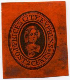 Keywords: 119L1 1857-58 Price's City Express - Post 2 Cents - Red.jpg 1857-1858 local Price's City Express 2-cent US postage stamp imperforate Scott 119L1 black on red Scanned by me from a stamp from my collection 2006-12-16 R A Nonenmacher PD-old 1857 stamps Local Stamps of the United States Local 119L1 People of the United States on stamps |