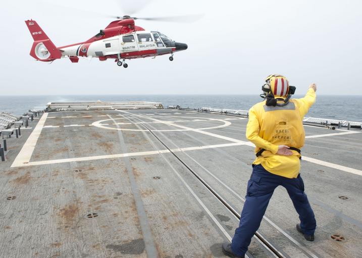 | Keywords: 120618-N-HI414-116 (7420190944).jpg U S Coast Guard Ensign Scott Nichols a landing signal officer aboard the U S Coast Guard national security cutter USCGC Waesche WMSL 751 launches an HH-65 Dolphin helicopter assigned to the Malaysian Maritime Enforcement Agency during deck landing drills in the Strait of Malacca June 18 2012 as part of Cooperation Afloat Readiness and Training CARAT Malaysia CARAT is a series of bilateral exercises held annually in Southeast Asia to strengthen relationships and enhance force readiness U S Navy photo by Mass Communication Specialist 3rd Class Gregory A Harden II/Released https //www flickr com/photos/39955793 N07/7420190944/ 120618-N-HI414-116 2012-06-18 11 51 https //www flickr com/people/39955793 N07 U S Department of Defense Current Photos PD-USGov U S Department of Defense Current Photos https //flickr com/photos/39955793 N07/7420190944 2016-09-03 10 53 28 United States Government Work Strait of Malacca Airbus Helicopters AS365 Dauphin USCGC Waesche WMSL-751 United States Coast Guard |