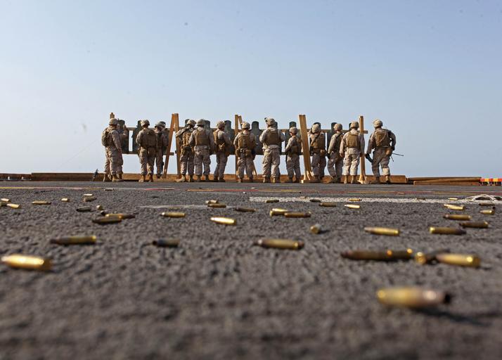 | Keywords: 120819-M-RO494-003 (7839940672).jpg U S Marines with Battalion Landing Team 1st Battalion 2nd Marine Regiment 24th Marine Expeditionary Unit MEU replace their targets after conducting a multiple target live-fire range on the flight deck of the amphibious assault ship USS Iwo Jima LHD 7 at an undisclosed location Aug 19 2012 The Marines conducted various live fire ranges while under way to keep their skills sharp during deployment The 24th MEU was deployed with the Iwo Jima Amphibious Ready Group as a theater reserve force for U S Central Command and provided support for maritime security operations and theater security cooperation efforts in the U S 5th Fleet area of responsibility DoD photo by Gunnery Sgt Chad R Kiehl U S Marine Corps/Released https //www flickr com/photos/39955793 N07/7839940672/ 120819-M-RO494-003 2012-08-19 08 08 https //www flickr com/people/39955793 N07 U S Department of Defense Current Photos PD-USGov U S Department of Defense Current Photos https //flickr com/photos/39955793 N07/7839940672 2016-09-03 10 14 36 United States Government Work 24th Marine Expeditionary Unit |