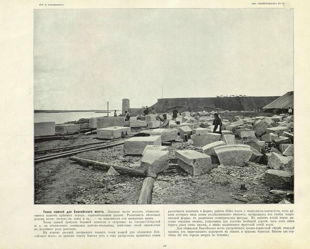 | Keywords: 120 Теска камней для Енисейского моста.jpg en «Great Path - Views of Siberia and Great Siberian Railway» book 1899 ru Альбом «Великий путь Виды Сиби и и Великой сиби ской железной до оги» 1899 1899 flickr photos by I R Tomaskiewicz comments by V A I-v Custom license marker 2014 04 08 PD-RusEmpire PD-old Great Path - Views of Siberia and Great Siberian Railway Uploaded with UploadWizard | ||||