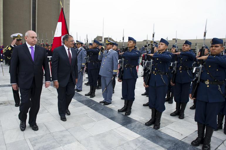 | Keywords: 121006-D-BW835-006 (8071031532).jpg U S Secretary of Defense Leon E Panetta right and Peruvian Minister of Defense Pedro Cateriano Bellido inspect troops at a ceremony in Lima Peru Oct 6 2012 Panetta visited South America on a four-day trip to strengthen defense relationships with Western Hemisphere counterparts DoD photo by Erin A Kirk-Cuomo/Released https //www flickr com/photos/39955793 N07/8071031532/ 121006-D-BW835-006 2012-10-06 10 56 https //www flickr com/people/39955793 N07 U S Department of Defense Current Photos PD-USGov U S Department of Defense Current Photos https //flickr com/photos/39955793 N07/8071031532 2016-09-03 09 55 23 United States Government Work Lima United States Department of Defense |