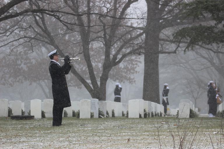 Keywords: outdoor 140121-N-ZE053-004 ARLINGTON, Va. (Jan. 21, 2014) Chief Musician Stan Curtis plays taps during a full honors funeral at Arlington National Cemetery. A snow storm closed the federal government that day, however the Navy Band and the Ceremonial Guard continued to render honors to veterans. The band performs music at official military, government and special events. (U.S. Navy photo by Chief Musician Christian Johanson/Released) 140121-N-ZE053-004 ARLINGTON, Va. (Jan. 21, 2014) Chief Musician Stan Curtis plays taps during a full honors funeral at Arlington National Cemetery. A snow storm closed the federal government that day, however the Navy Band and the Ceremonial Guard continued to render honors to veterans. The band performs music at official military, government and special events. (U.S. Navy photo by Chief Musician Christian Johanson/Released)