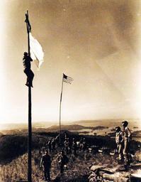 | Keywords: outdoor serene sea water surreal sunset 127-GW-1615-136767: Occupation of Japan, 1945. The American Flag is raised over the crest of a mountain overlooking the suburban town of Tahjma just outside the city of Sasebo, Japan, by Sergeant Albert F. Hoffman, right, and Private William E. Briggs, left, who guide “Old Glory” to the top of a crude Japanese flagpole, using a piece of communication wire as a pulley as members of Easy Company, 2nd Battalion, 27th Marines, a unit of 5th Marine Division , look on, at attention. Photographed by Corporal Bob Campbell, September 25, 1945. Official U.S. Marine Corps Photograph, now in the collections of the National Archives. (2016/10/25). 127-GW-1615-136767: Occupation of Japan, 1945. The American Flag is raised over the crest of a mountain overlooking the suburban town of Tahjma just outside the city of Sasebo, Japan, by Sergeant Albert F. Hoffman, right, and Private William E. Briggs, left, who guide “Old Glory” to the top of a crude Japanese flagpole, using a piece of communication wire as a pulley as members of Easy Company, 2nd Battalion, 27th Marines, a unit of 5th Marine Division , look on, at attention. Photographed by Corporal Bob Campbell, September 25, 1945. Official U.S. Marine Corps Photograph, now in the collections of the National Archives. (2016/10/25). |